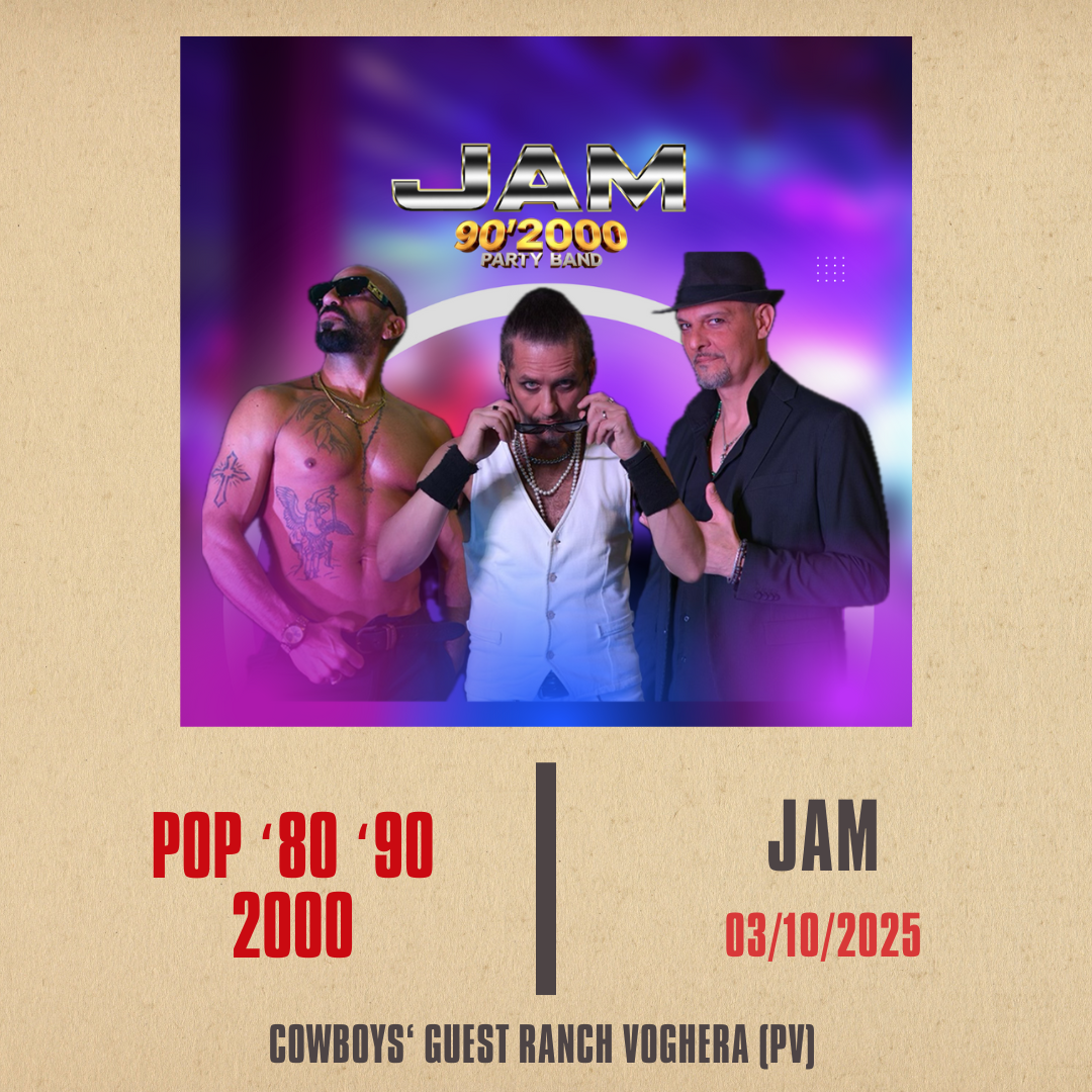Cowboys' Guest Ranch Via T. Morato 18, Voghera, PV, ItaliaPer chi cerca una Band dove la voglia di ballare e l’energia sono al centro della festa, la risposta è una sola: JAM LIVE SHOCK BAND. La band vi accompagnerà in un viaggio nella storia della musica, dagli anni ’80, 90, 2000 fino alle hit dei giorni nostri, in un dinamico spettacolo di luci e…
